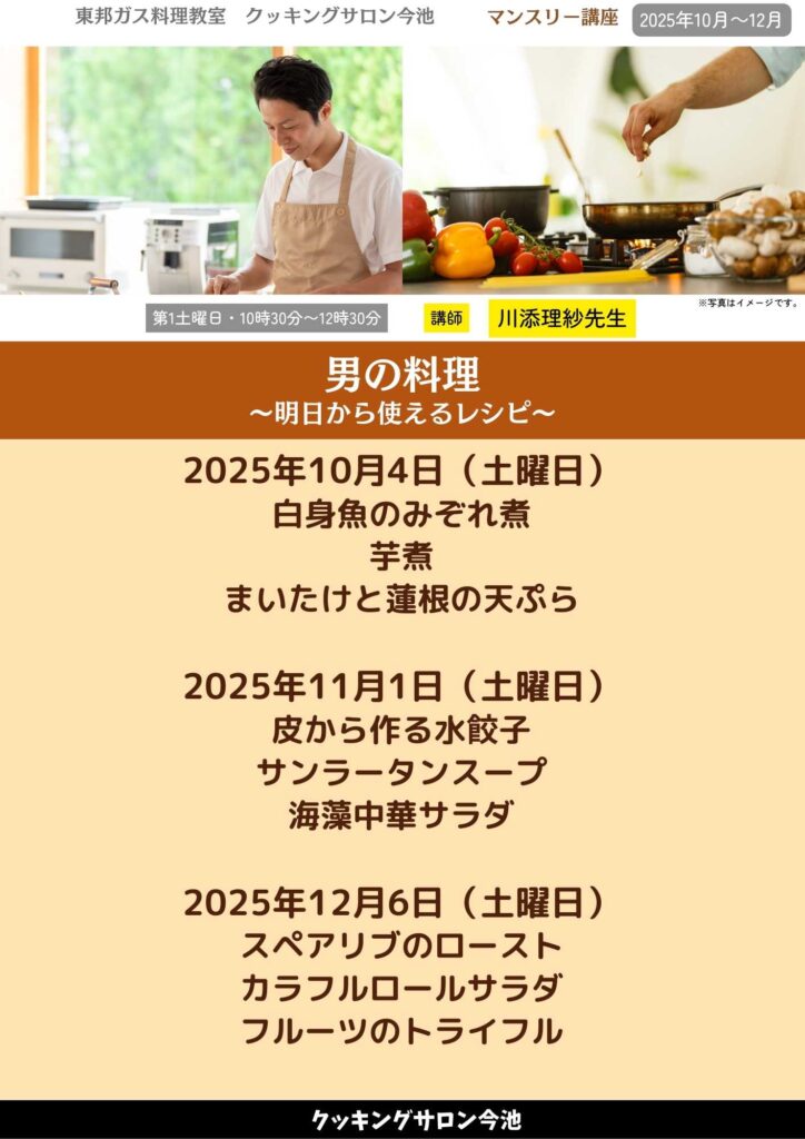 料理を習ってみたい男性のみなさま向けの優しいお料理教室。