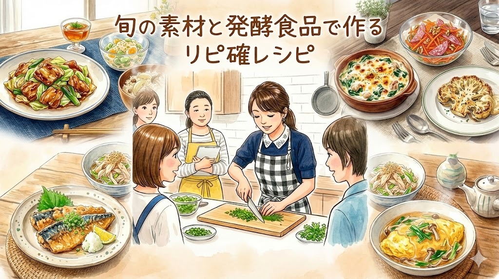 旬の素材や甘酒・塩麹などの発酵食品を使い、本当に“リピートしたくなる”やみつきレシピを習得する新講座。imaikeミニサロンの特別空間で、少人数制ならではのきめ細やかな指導を受けながら、毎月変わる旬の味わいを自宅で再現できる技術とコツを身につけましょう!
