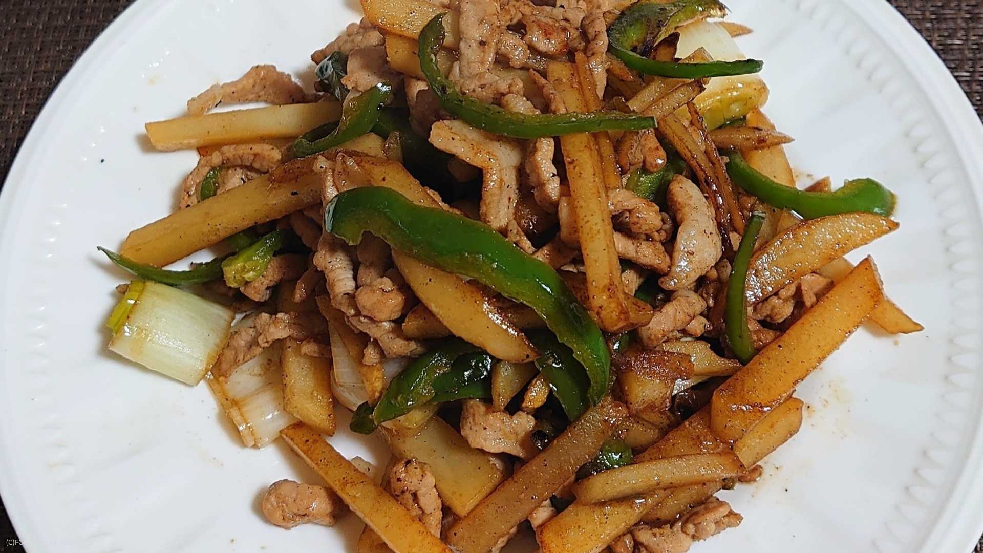 「炒めもの」は、食材を手早く加熱して仕上げる調理法の呼び名です。豚肉とじゃがいもを合わせた組み合わせは、家庭料理として親しまれてきたかたちです。