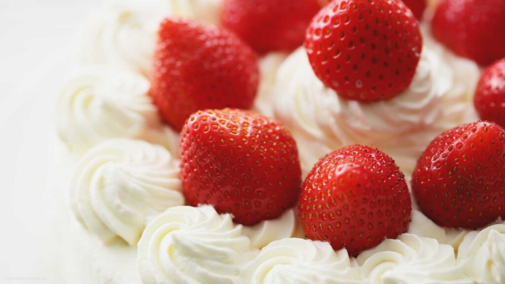 「ショートケーキ」は、スポンジ生地にクリームと果物を重ねて仕上げる洋菓子の名前です。苺を合わせたかたちは、日本で親しまれてきた定番の組み合わせです。